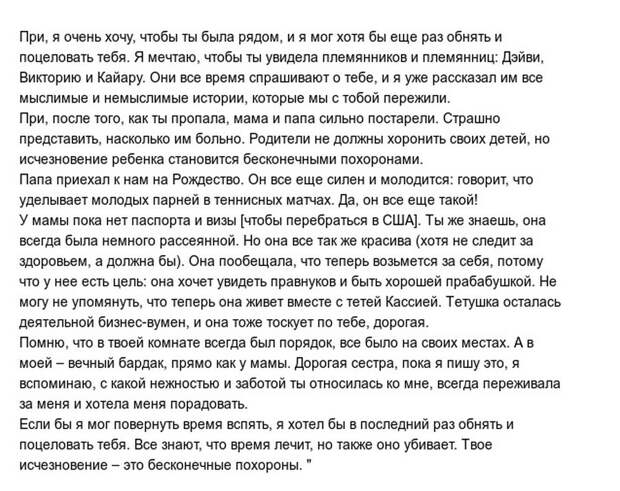 И все эти 14 лет они пишет в соцсетях трогательные письма к пропавшей сестре…