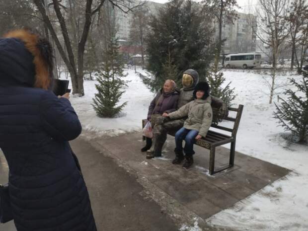 Скульптура прекрасно вписалась в ландшафт, как и ранее установленный памятник Виктору Цою на улице Тулебаева.